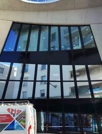 Pour réduire significativement la chaleur dans les locaux de la Mairie de Vaulx en velin, Nous avons posé du film anti chaleur Chrome . Le film Chrome 270 réduit la chaleur solaire tout en conservant une grande partie de la lumière naturelle. Il permet une diminution de l'éblouissement, et son léger aspect miroir sans tain élimine toute gêne de vis-à-vis et présente un design contemporain en façade.